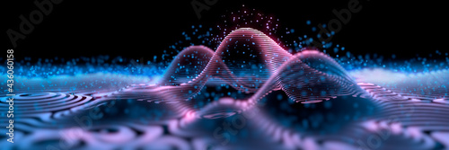 The watermark will not be included on Wall mural.: Waves in a digital grid with particles - atomic model