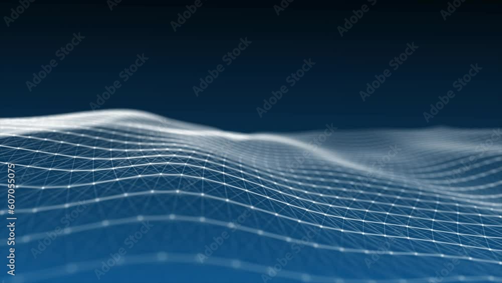 Wall mural : Waving blue glowing cybernetics connecting lines with wireframe wave background - beautiful abstract