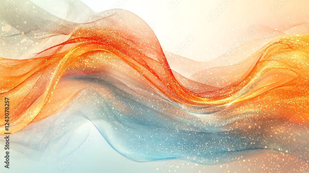 The watermark will not be included on Wall mural.: Wavy abstract shapes with a glittering effect, creating a magical, ethereal look for modern digital