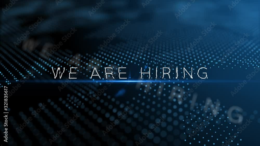 Wall mural : We are hiring modern intro text 3d animation with lens flare and depth of field focus blur