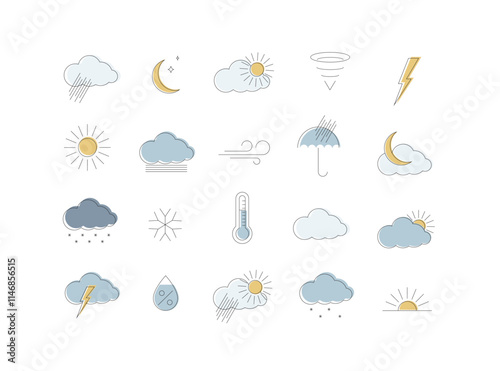 The watermark will not be included on Wall mural.: Weather app icons for web drawing with color in linear style on white background