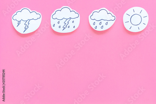 Wall mural weather forecast concept. modern weather icons set on pink background top view copy space - Wall murals Wall mural weather forecast concept. modern weather icons set on pink background top view copy space - Wall murals
