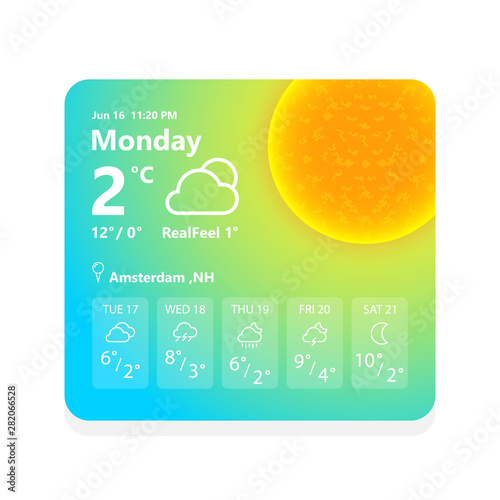 The watermark will not be included on Wall mural.: Weather forecast widget mobile application program layout template vector illustration