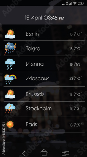 Wall mural weather forecast widget on screen. mobile application - Wall murals Wall mural weather forecast widget on screen. mobile application - Wall murals