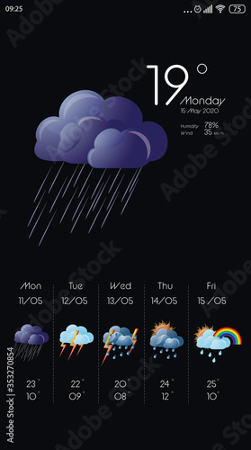 Wall mural weather forecast widget on screen. mobile application - Wall murals Wall mural weather forecast widget on screen. mobile application - Wall murals