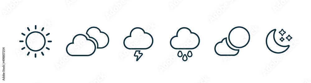 Wall mural : Weather icons set in line style, weather isolated on white background - clouds logo and sign, vector