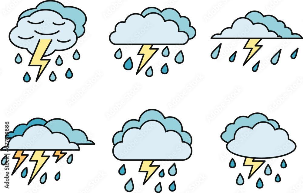 Wall mural : Weather thunderstorm icons set - outline set of weather thunderstorm vector icons thin line color fla