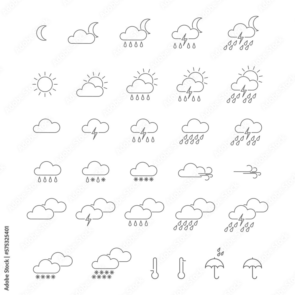 The watermark will not be included on Wall mural.: Weather - a set of icons of meteorological symbols - vector for websites, applications and web design -
