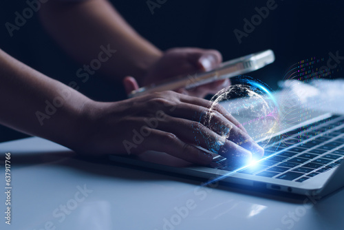 Wall mural : Web 3 concept - businessman hand show web 3 with globe - ai technology global network, future technolo