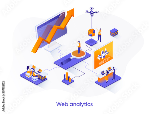 Wall mural : Web analytics isometric web banner - online business analytics isometry concept - data analysis servic