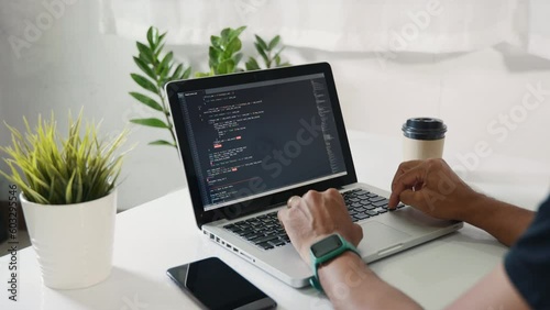 Wall mural : Web application development - programmer man writing program code sitting at workplace in office, sof