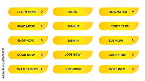 Wall mural web apps buttons set. yellow shiny reflected. vector eps 10