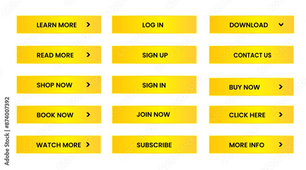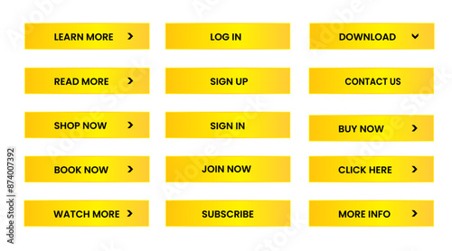 Wall mural Web apps Buttons set.  Yellow shiny reflected. Vector EPS 10 - Wall murals Wall mural Web apps Buttons set. Yellow shiny reflected. Vector EPS 10 - Wall murals