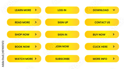 Wall mural web apps buttons set. yellow shiny reflected. vector eps 10