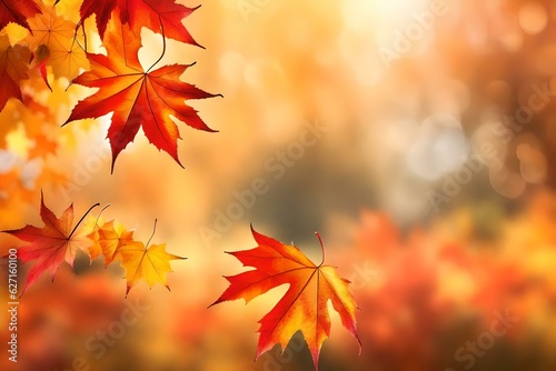 Wall mural : Web banner design for autumn season and end-year activity with red and yellow maple leaves with soft