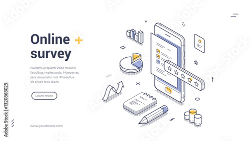 Wall mural web banner features isometric design focused on online surveys. it showcases a mobile device display - Wall murals Wall mural web banner features isometric design focused on online surveys. it showcases a mobile device display - Wall murals