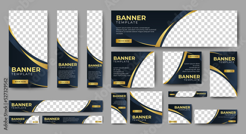 Web banner template design set layout with photo and text space - black and gold - business advertisinWall mural