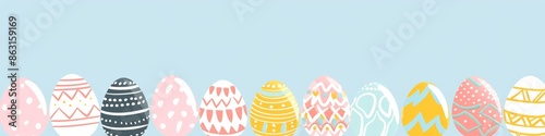 The watermark will not be included on Wall mural.: Web banner - vector illustration of easter eggs with various colors and pattern designs -