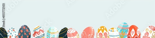 The watermark will not be included on Wall mural.: Web banner - vector illustration of easter eggs with various colors and pattern designs -