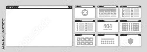 Wall mural : Web browser window, pages layout with toolbar and search field - modern website, internet page in fla