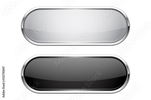 Wall mural web buttons. black and white shiny oval icons with chrome frame