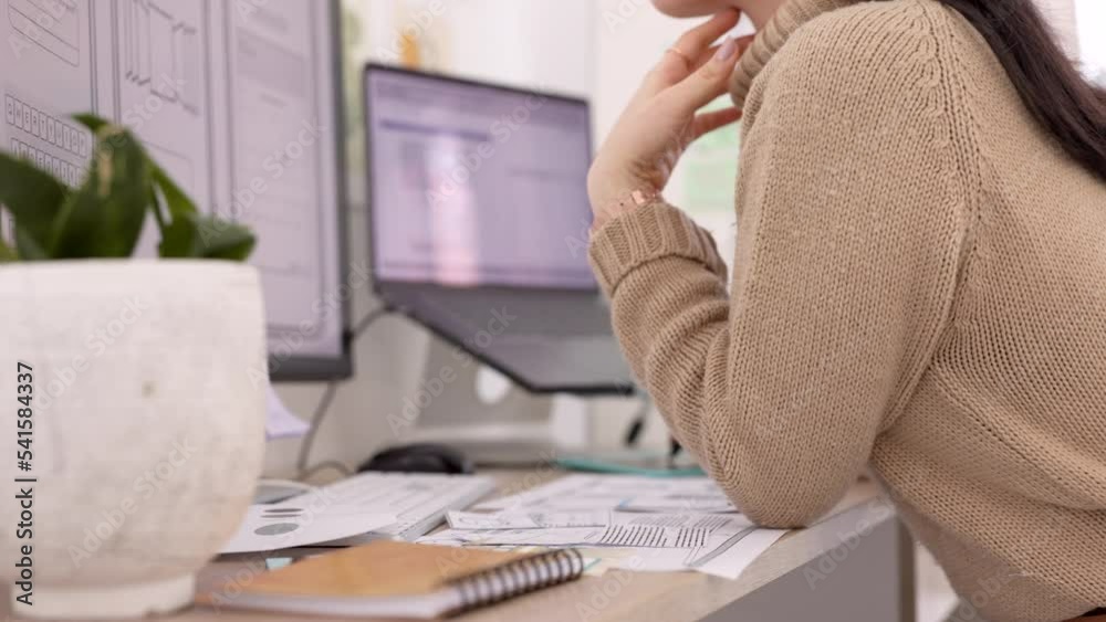 Web design, work and woman planning on a computer, working on the web and doing research with notes Wall mural