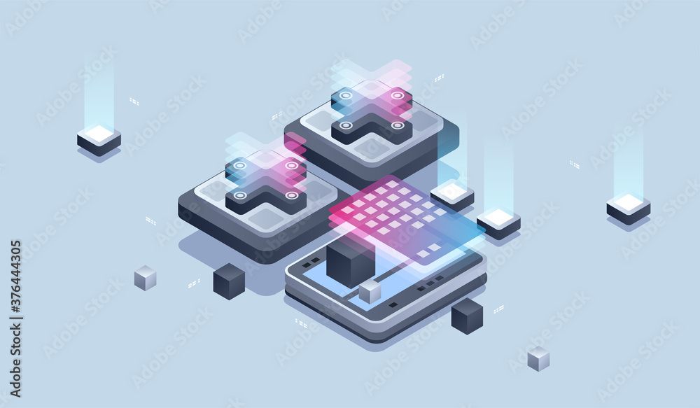 The watermark will not be included on Wall mural.: Web design and development - mobile application development, programmer and engineering isometric ill