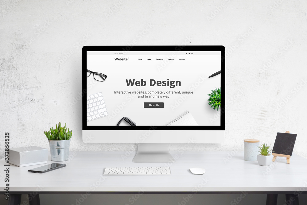 Web design company web site concept on computer display - modern flat design website - office desk witWall mural