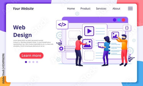 Wall mural web design concept, people creating an web application design, content and text place. modern flat w - Wall murals Wall mural web design concept, people creating an web application design, content and text place. modern flat w - Wall murals