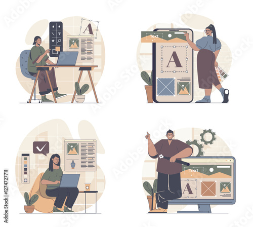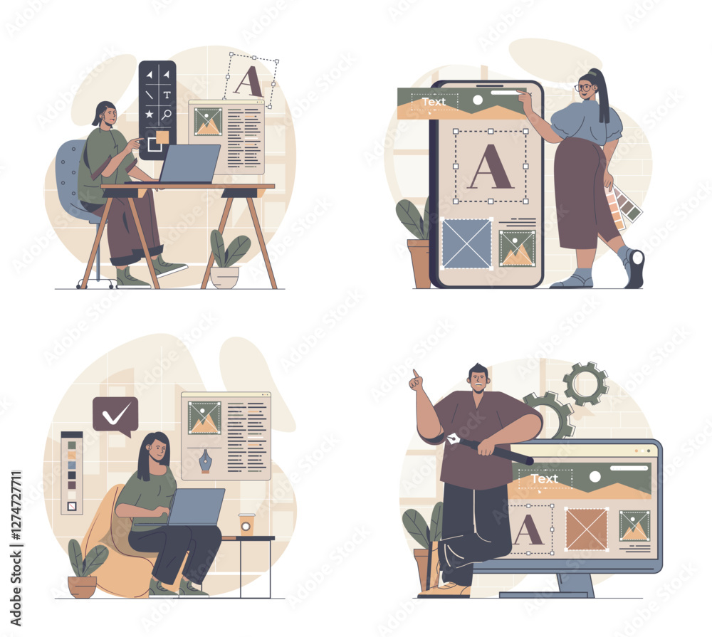 Wall mural web design concept scenes set in flat design. people in situations of building wireframe layout, fil - Wall murals Wall mural web design concept scenes set in flat design. people in situations of building wireframe layout, fil - Wall murals