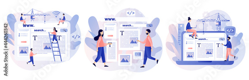 Wall mural web design concept. tiny people building webpage. website interface design. software development pro - Wall murals Wall mural web design concept. tiny people building webpage. website interface design. software development pro - Wall murals