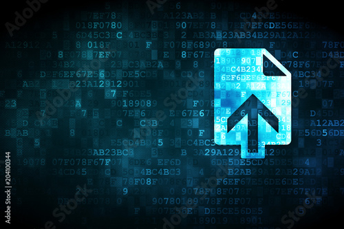 Wall mural : Web design concept: pixelated upload icon on digital background, empty copyspace for card, text, adv
