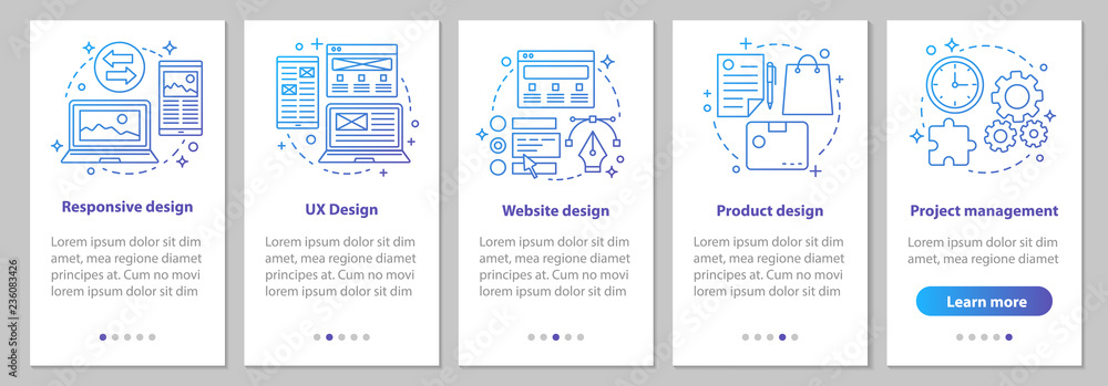 Wall mural : Web design onboarding mobile app page screen with linear concept