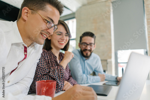 Wall mural web design team discussing a website solution - Wall murals Wall mural web design team discussing a website solution - Wall murals
