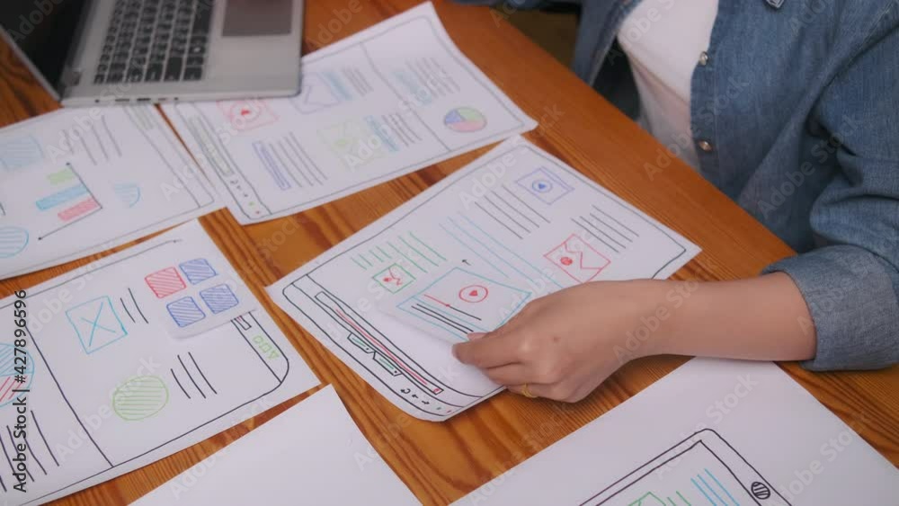 The watermark will not be included on Wall mural.: Web designer working laptop responsive design - creative ui ux designer teamwork meeting planning des