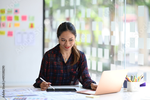 Wall mural : Web designer working on framework of new application for mobile phone at creative office -