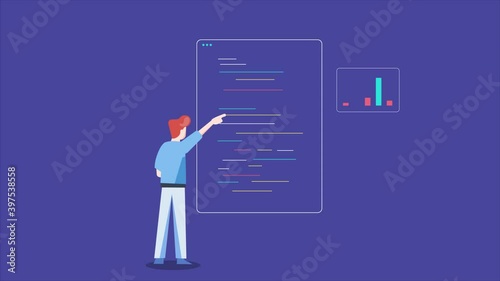 Wall mural web development, coding and programming technology. programmer in a process of software app developm