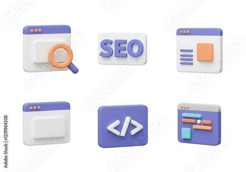 The watermark will not be included on Wall mural.: Web development , seo, coding and programming 3d vector icon set - cartoon minimal style -