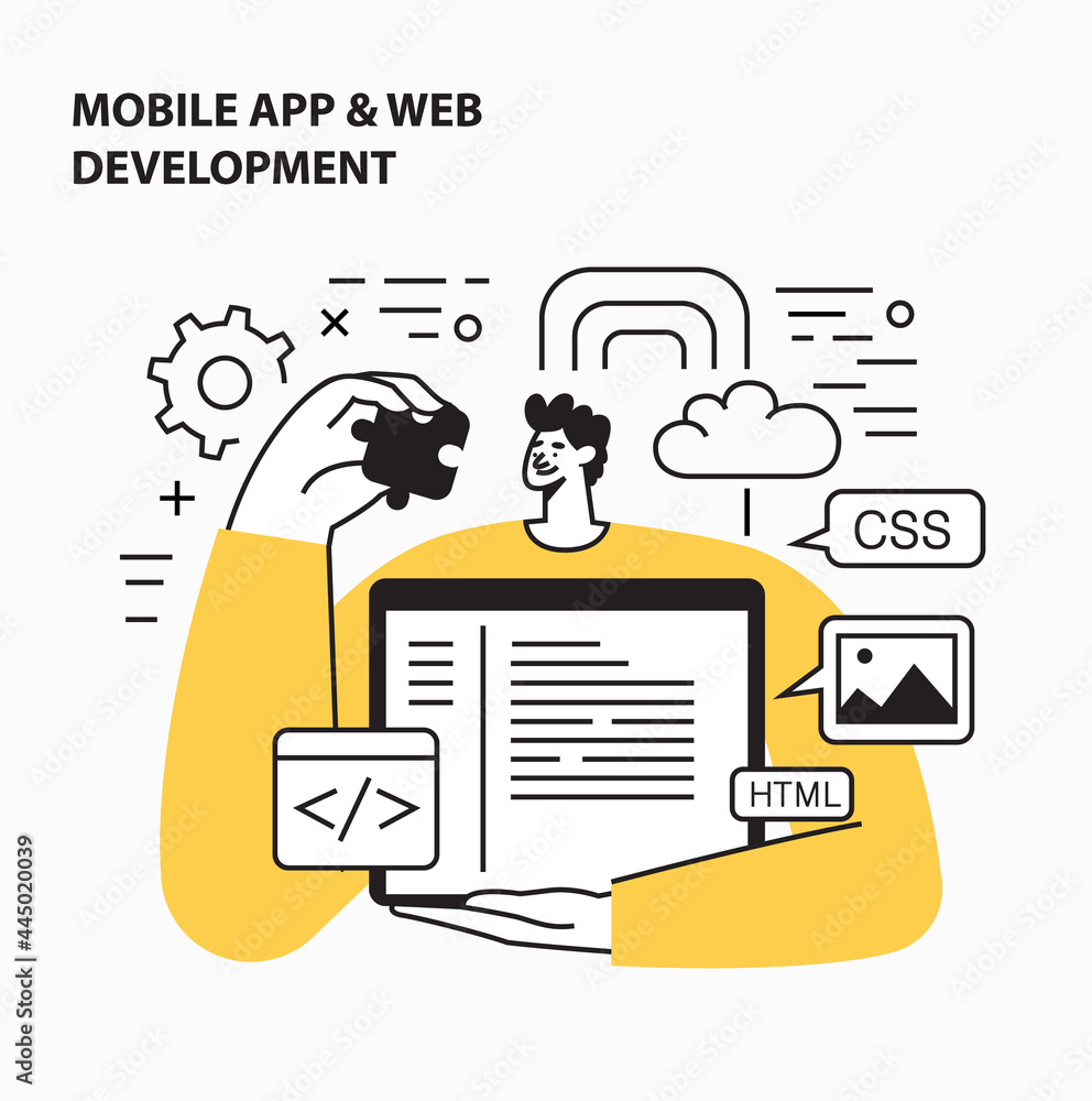 Wall mural : Web development agency abstract concept vector illustration set - front and back end development, res