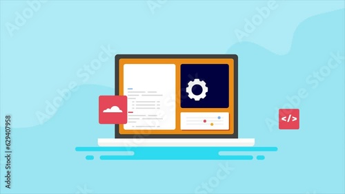 Wall mural : Web development and coding, software application programming script on laptop window, cloud wirefram
