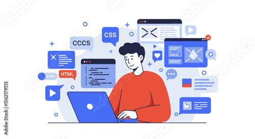 Wall mural web development and coding concept vector illustration for digital design and programming projects