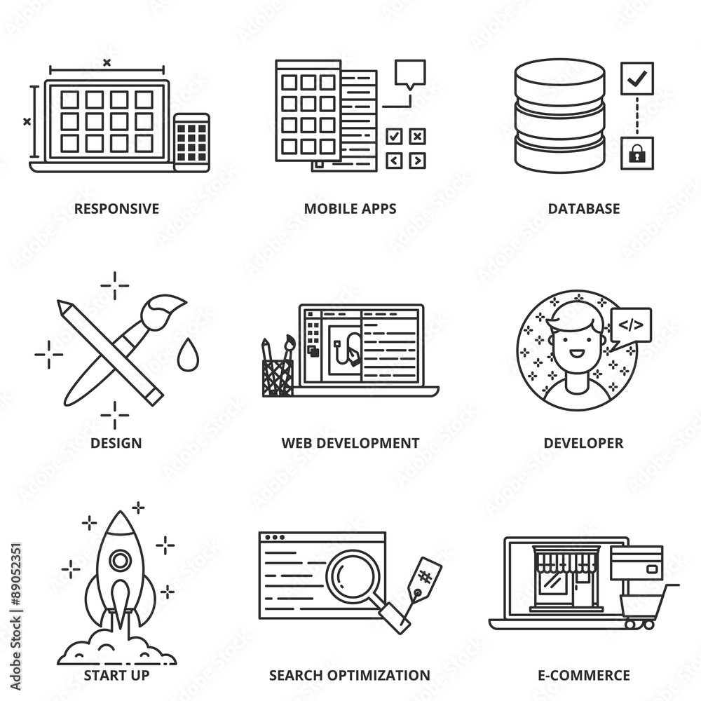 Wall mural web development and design vector icons set modern line style - Wall murals Wall mural web development and design vector icons set modern line style - Wall murals