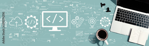 Wall mural web development concept with a laptop computer on a desk - Wall murals Wall mural web development concept with a laptop computer on a desk - Wall murals