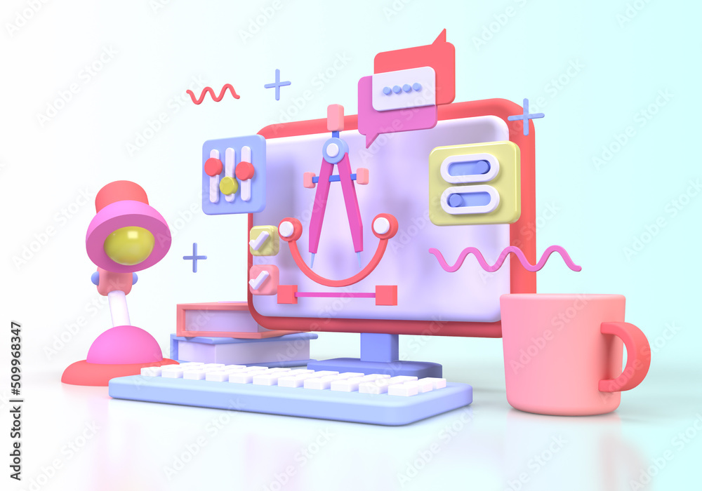Wall mural web development for ui ux design concept illustration landing page template business idea background