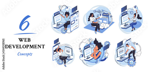 The watermark will not be included on Wall mural.: Web development metaphor, coding and programming responsive layout internet site or app of devices -