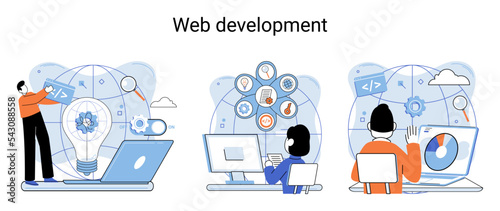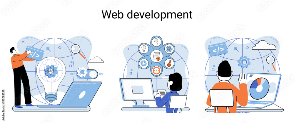The watermark will not be included on Wall mural.: Web development metaphor, coding and programming responsive layout internet site or app of devices -