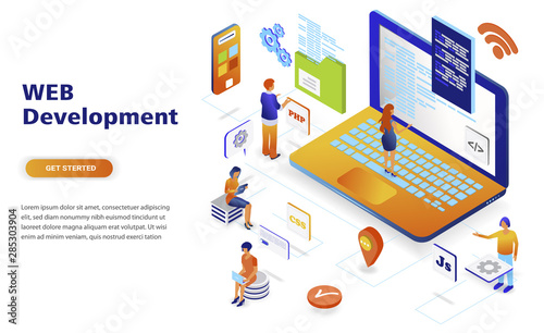 Wall mural web development modern flat design isometric concept. developer and people concept. landing page tem - Wall murals Wall mural web development modern flat design isometric concept. developer and people concept. landing page tem - Wall murals