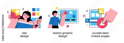 Wall mural : Web development services - set of abstract business concept illustrations - web design, motion graphi