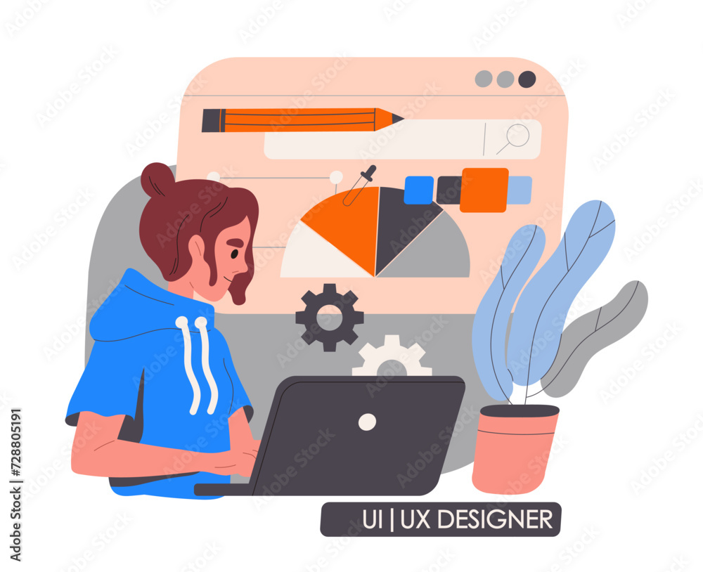 The watermark will not be included on Wall mural.: Web development team concept - freelancer and remote worker at workplace - organizing efficient work p