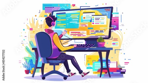 Wall mural web development. programming languages. css, html, it, ui. programmer cartoon character developing w - Wall murals Wall mural web development. programming languages. css, html, it, ui. programmer cartoon character developing w - Wall murals